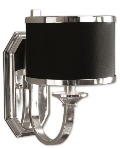 Uttermost 11.5" Inch Tuxedo Wall Sconce Lighting Fixture Silver Plated Metal w/Black Hardback Shade Review